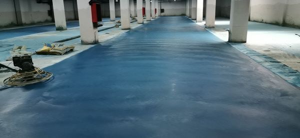 雙青顏料在山東昌樂縣城鐵藍做的耐磨地坪地下停車場