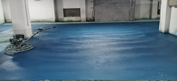 藍色金剛砂耐磨地坪施工現(xiàn)場